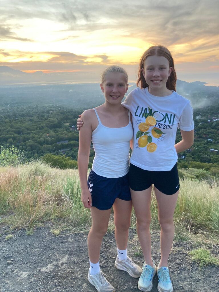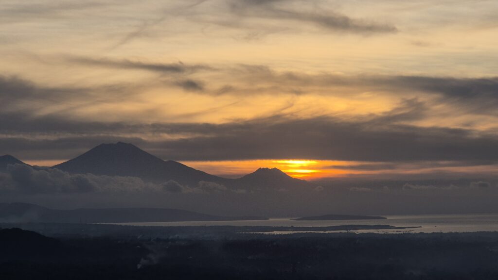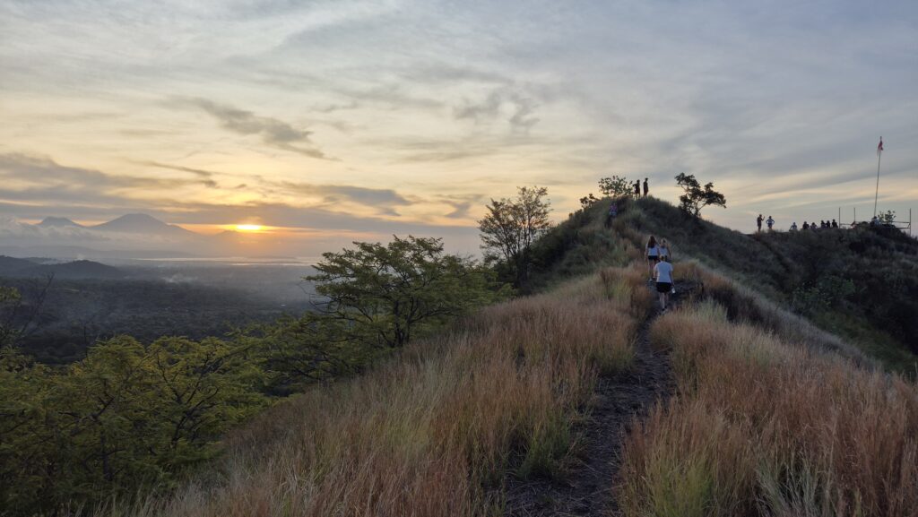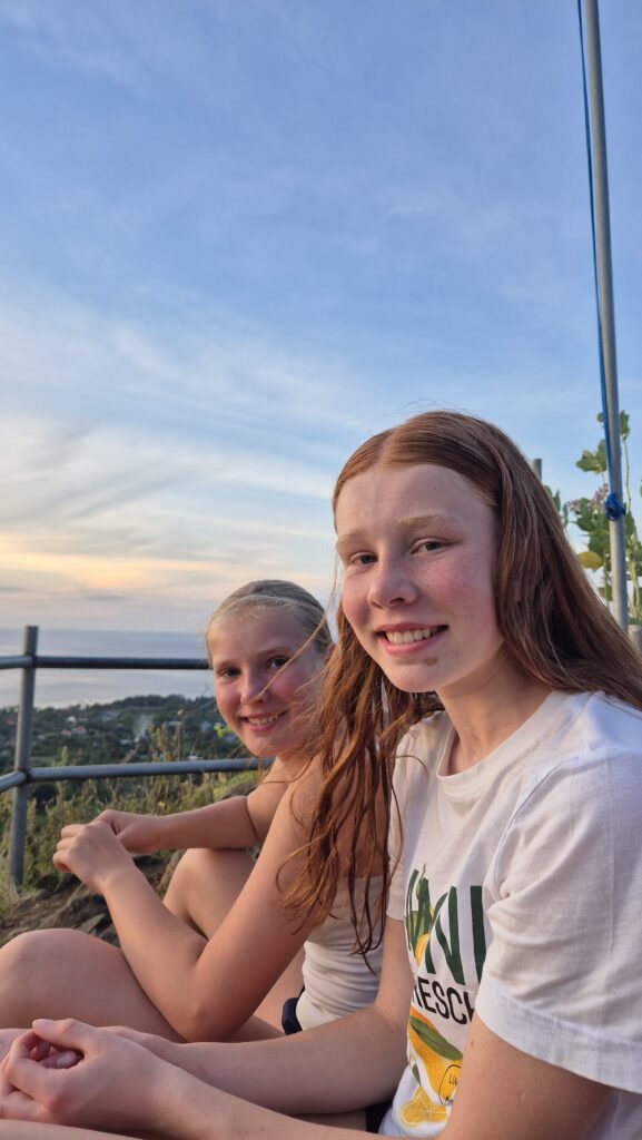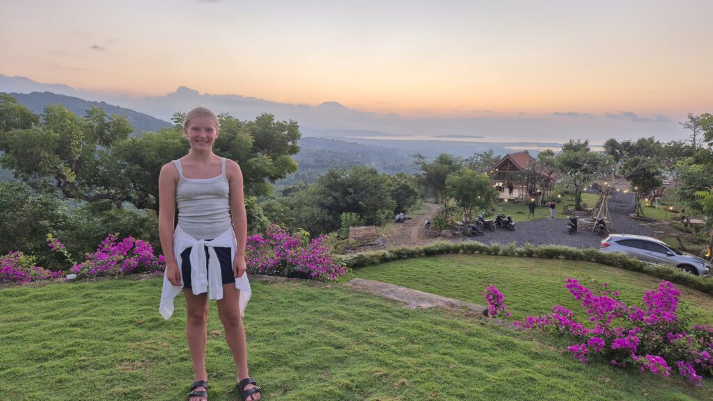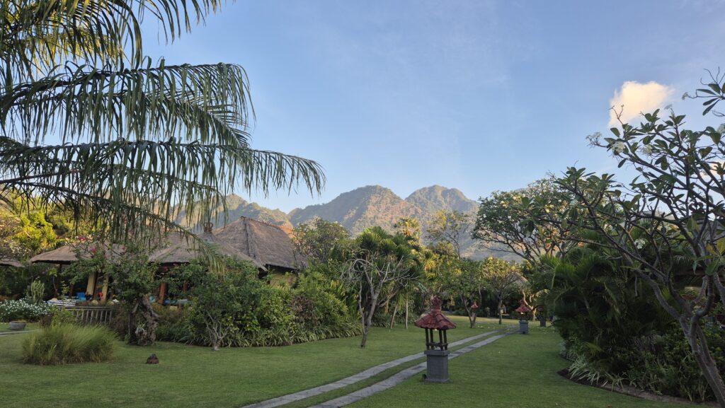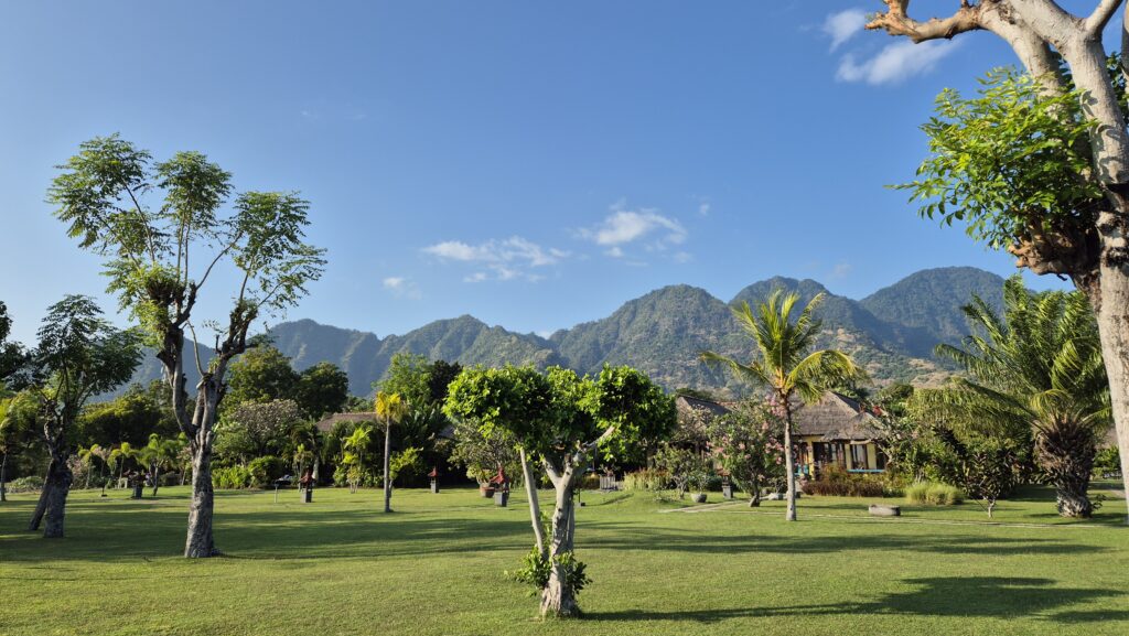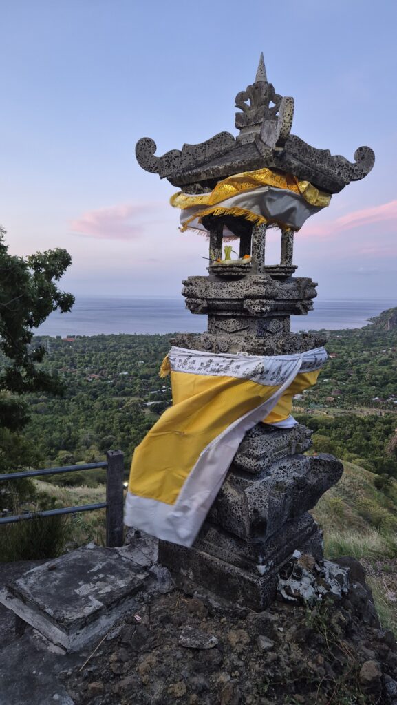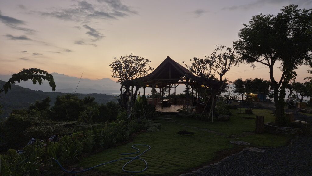 Der er flot i bjergene lige bag ved byen, og der er flere udsigtspunkter til havet og solnedgang. Vi tog en tur op til et af dem lige bag ved Mades bungalows. Man kan se vulkanerne på naboøen Java derfra.