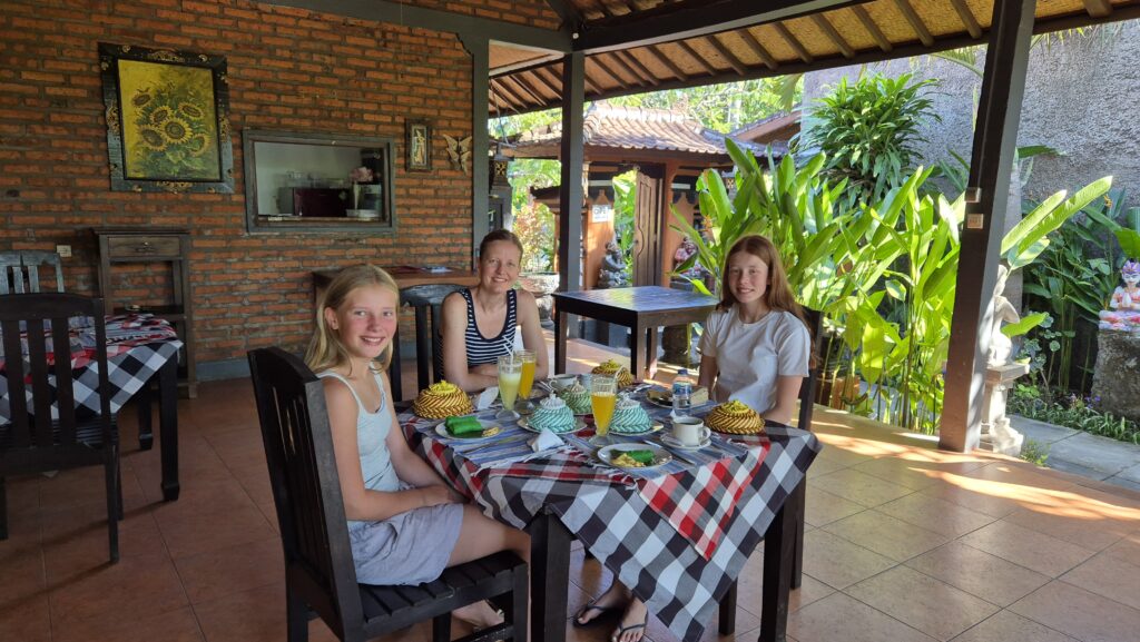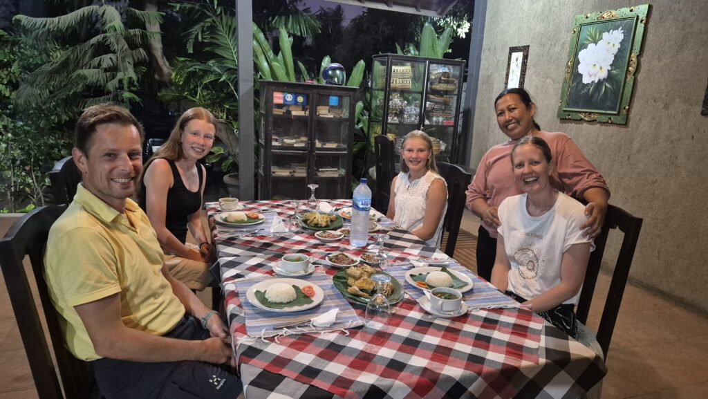 Vi har boet i et hyggeligt guesthouse hos Made, som har taget sig rigtig godt af os i en uges tid. Sammen med hendes hold af søde kvinder, som vimser rundt, sørger hun for, at vores værelser er i fineste stand, laver morgenmad og endda gratis aftensmad en af dagene og hjælper os med scooterleje og alt muligt andet. Hun har været skøn.