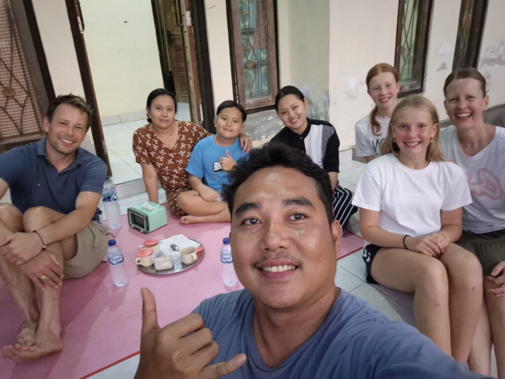 Vi rejser videre til Java. Vi tager en uge med lidt vulkanvandring, vandfald og hvad der ellers dukker op. Vi har hyret en chauffør, og skæbnen ville, at vi er rendt ind i en vi kender. Rosi blev uddannet som divemaster samme sted som Torben, og ved et helt vildt sammentræf er han endt som vores guide og chauffør på Java. Det glæder vi os til. Vi har været ude og besøge hans familie inden afrejsen, hvilket var en af de supergode og meget private oplevelser, man får, når man viser, at man gerne vil lokalbefolkningen.