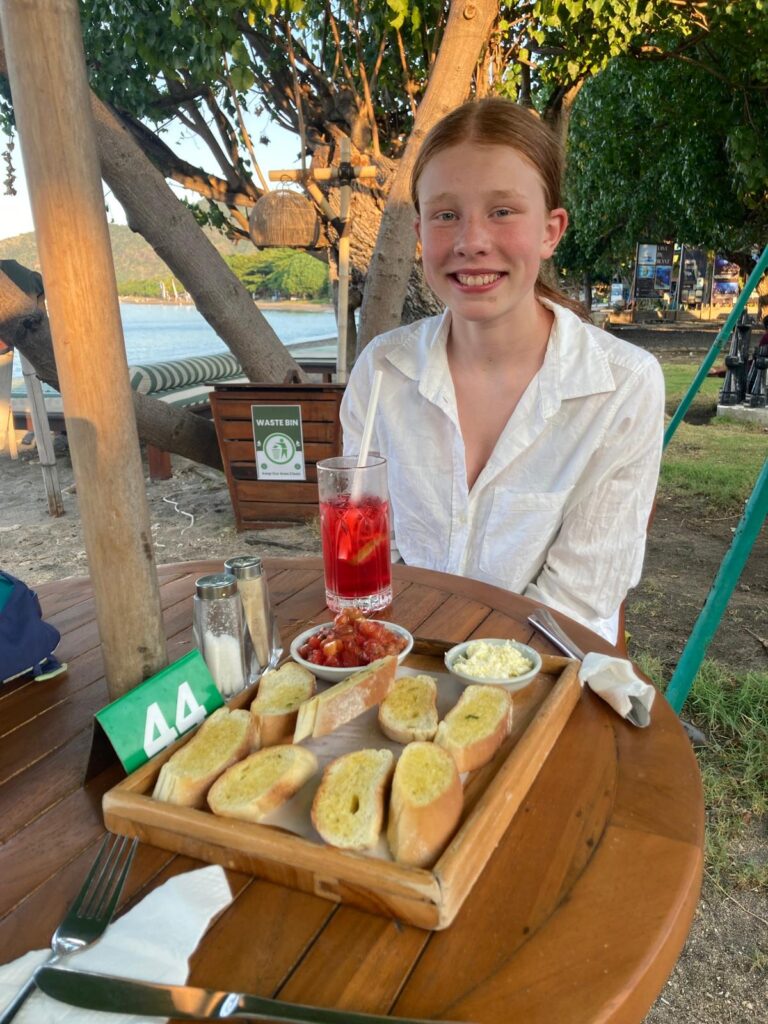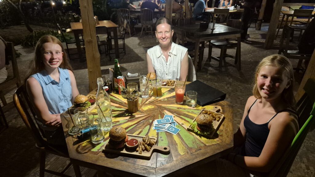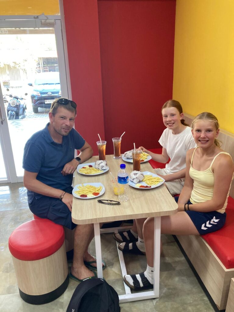 En lille detalje, man skal være opmærksom på, er at restauranterne ikke alle er lige gearede til mange gæster. Der lader til, at der ofte kun er en kok, og bestiller man 4 forskellige retter – ja, så kommer de én ad gangen i takt med at kokken bliver færdig. Vi har næsten ondt af den af os, der får maden sidst. Når man så har ventet i over en time på en hurtig ret, bestiller man altså ikke lige 4 forskellige desserter… vi griner lidt af det, når blodsukkeret er kommet op igen.