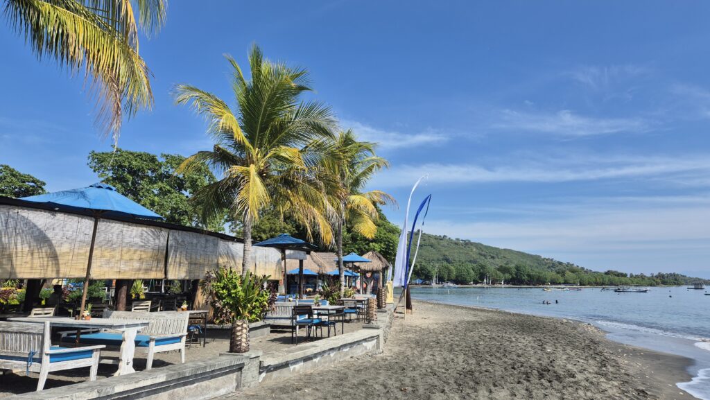 Vi er rejst videre fra bjergene i den nordlige del af Bali til Balis nordvestlige kyst. Her ligger den stille by Pemutaren, som ligger utroligt smukt mellem Balis nordkyst og de bagvedliggende bjerge, som er i gåafstand fra byen. Et rigtig lille smørhul, og så kommer man her for at dykke. Ikke langt herfra ligger øen Menjangan, som er en nationalpark omgivet af fantastiske koralrev. Her findes Balis bedste dykning, og det er også derfor, vi er taget hertil. Her er også en virkelig lækker strand, og man kan snorkle og dykke fra stranden direkte ud til de nærmeste koralreve. Rent slaraffenland for de dykkerglade.